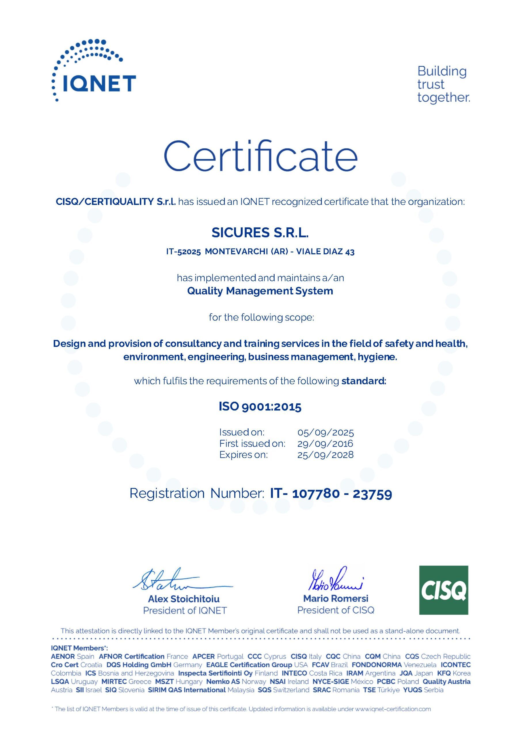 Abbiamo voluto cogliere l’occasione di sperimentare su noi stessi il servizio relativo al passaggio del sistema Qualità secondo la nuova norma di certificazione. La nostra vision consiste nel fornire ai clienti la miglior consulenza possibile. Abbiamo considerato noi stessi come clienti al fine di metterci alla prova anche sotto questo punto di vista. Siamo quindi molto orgogliosi di comunicare formalmente il conseguimento del certificato. Risolvere i vostri problemi ed aiutarvi a raggiungere gli obiettivi di sviluppo sono sempre di più la nostra priorità.